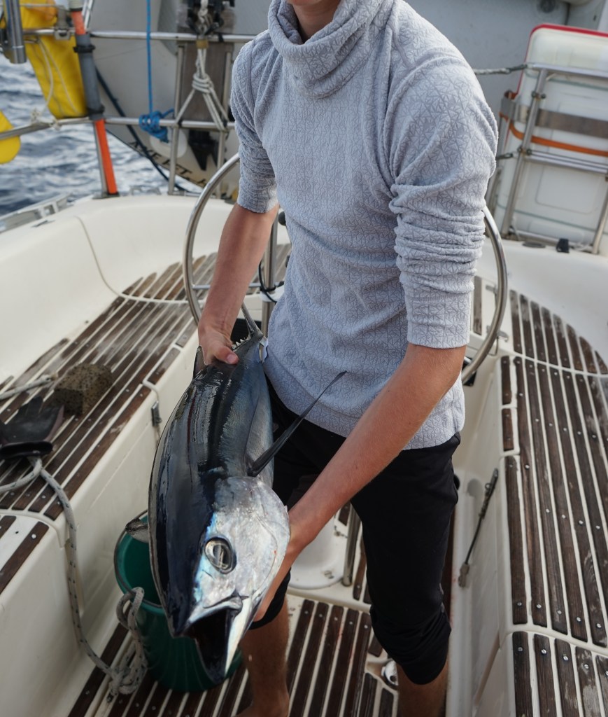 2019 – LE GOLFE DE GASCOGNE ALLER. NOUS AVONS FINI PAR NOUS FAIRE UNE RAISON, LA PECHE AVEC FETCH, QUAND LES MOYENNES SONT SOUVENT PROCHES DE 7NDS, FINIS LES MAQUEREAUX (UN SEUL MAQUEREAU PECHE DEPUIS 2014) SEULS LES BONITES OU LES THONS SUIVENT. NOUS AVONS DU PASSER DE LA PARAVANE AU PENN SENATOR 9.0 AVEC HARNAIS CEINTURE.